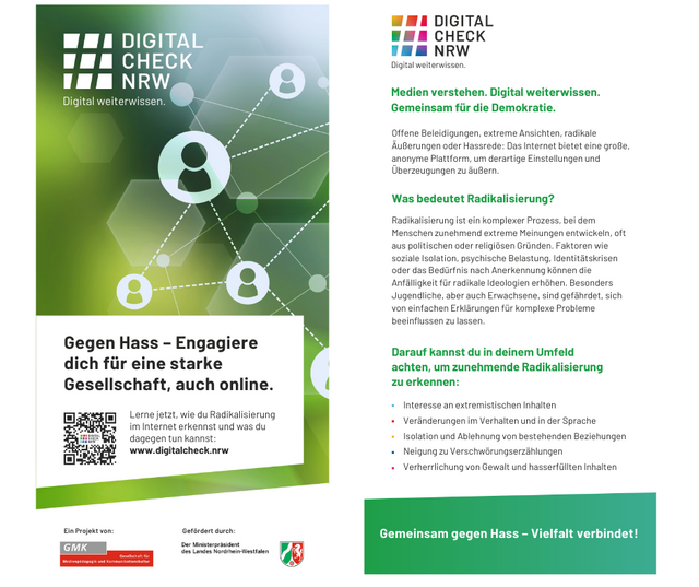 Als #DigitalCheckNRW-Team haben wir es uns zur Aufgabe gemacht, Medienkompetenz in der Gesellschaft zu fördern - vor allem für die Menschen, die nicht mehr im regulären Schulsystem sind. Der #DigitalCheckNRW basiert auf dem Medienkompetenzrahmen NRW und wurde für Erwachsene angepasst. Trotzdem bieten wir auch Material und Methoden für die Arbeit mit Jugendlichen und jungen Erwachsenen an. Für Schülerinnen und Schüler der Sekundarstufe II sind auch die Test-Inhalte unseres #DigitalCheckNRW geeignet.